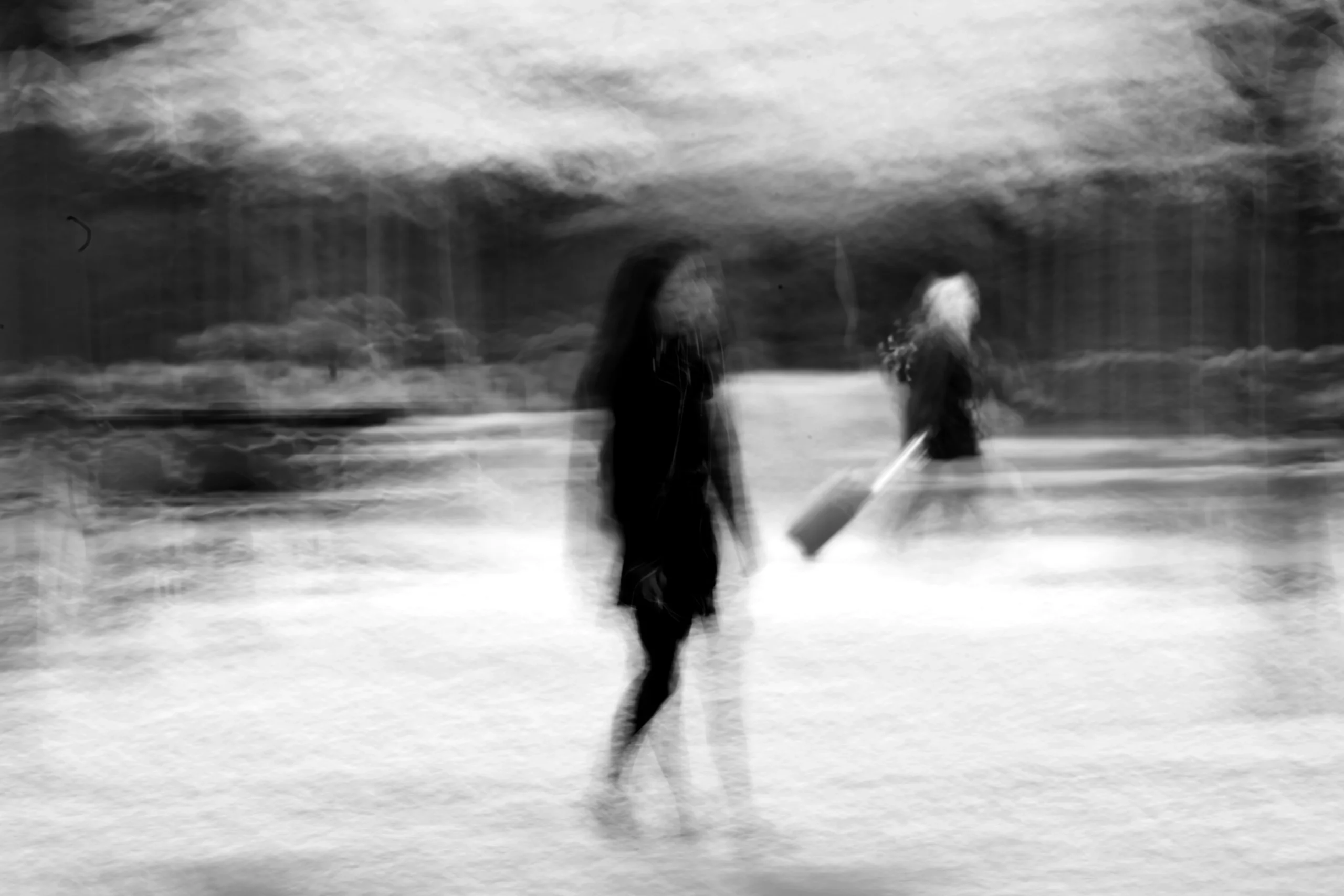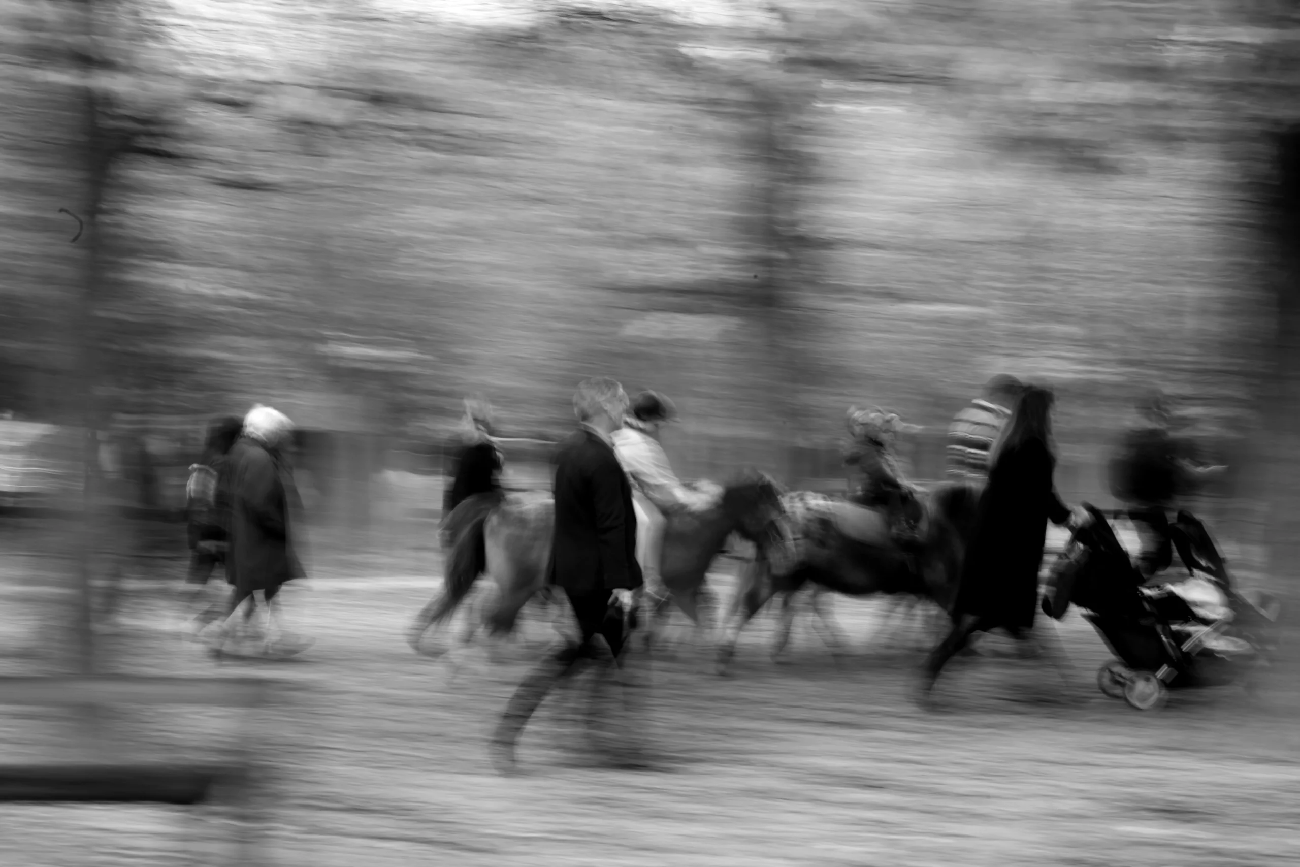 black and white. They walk along the paths of these gardens